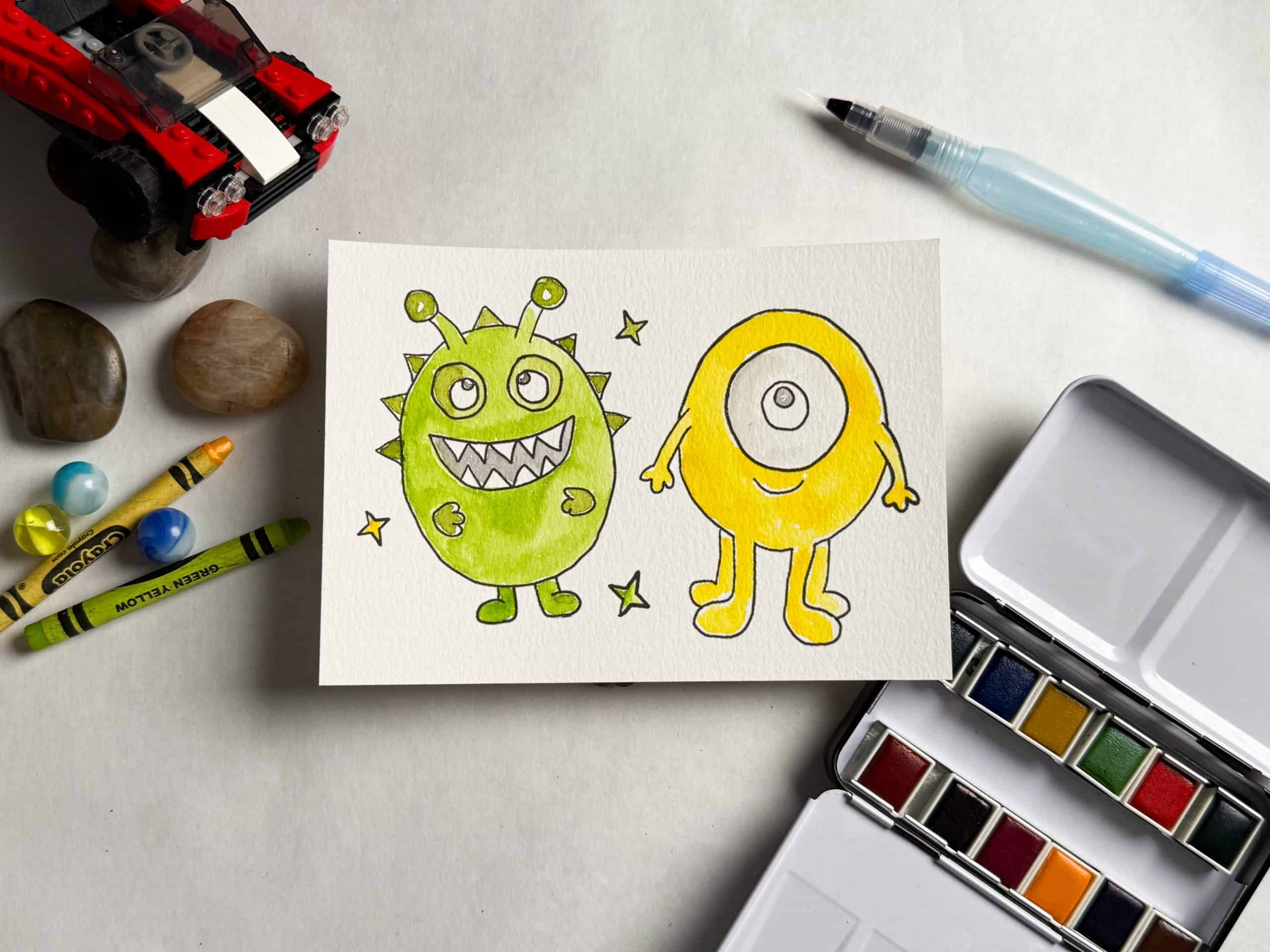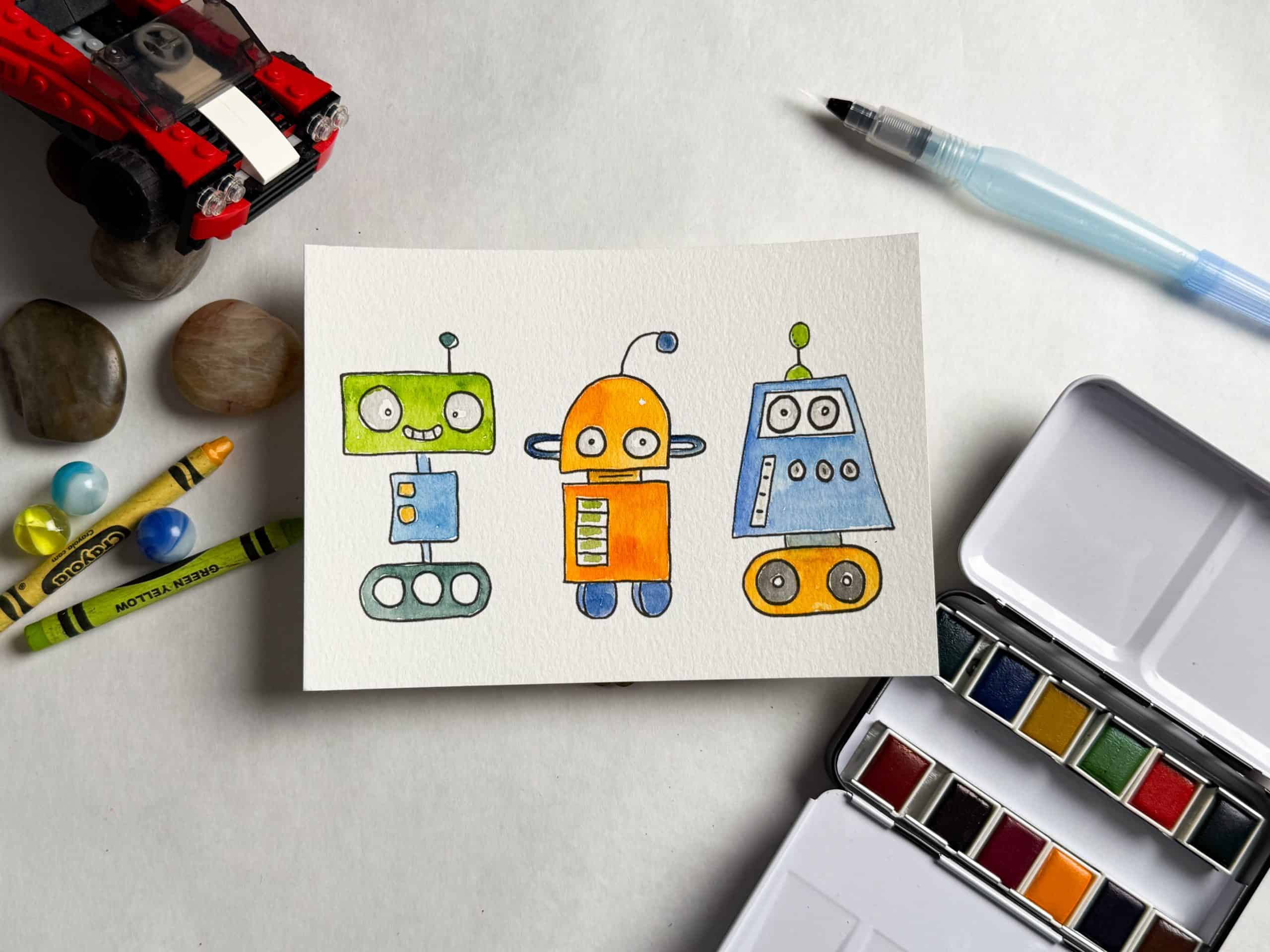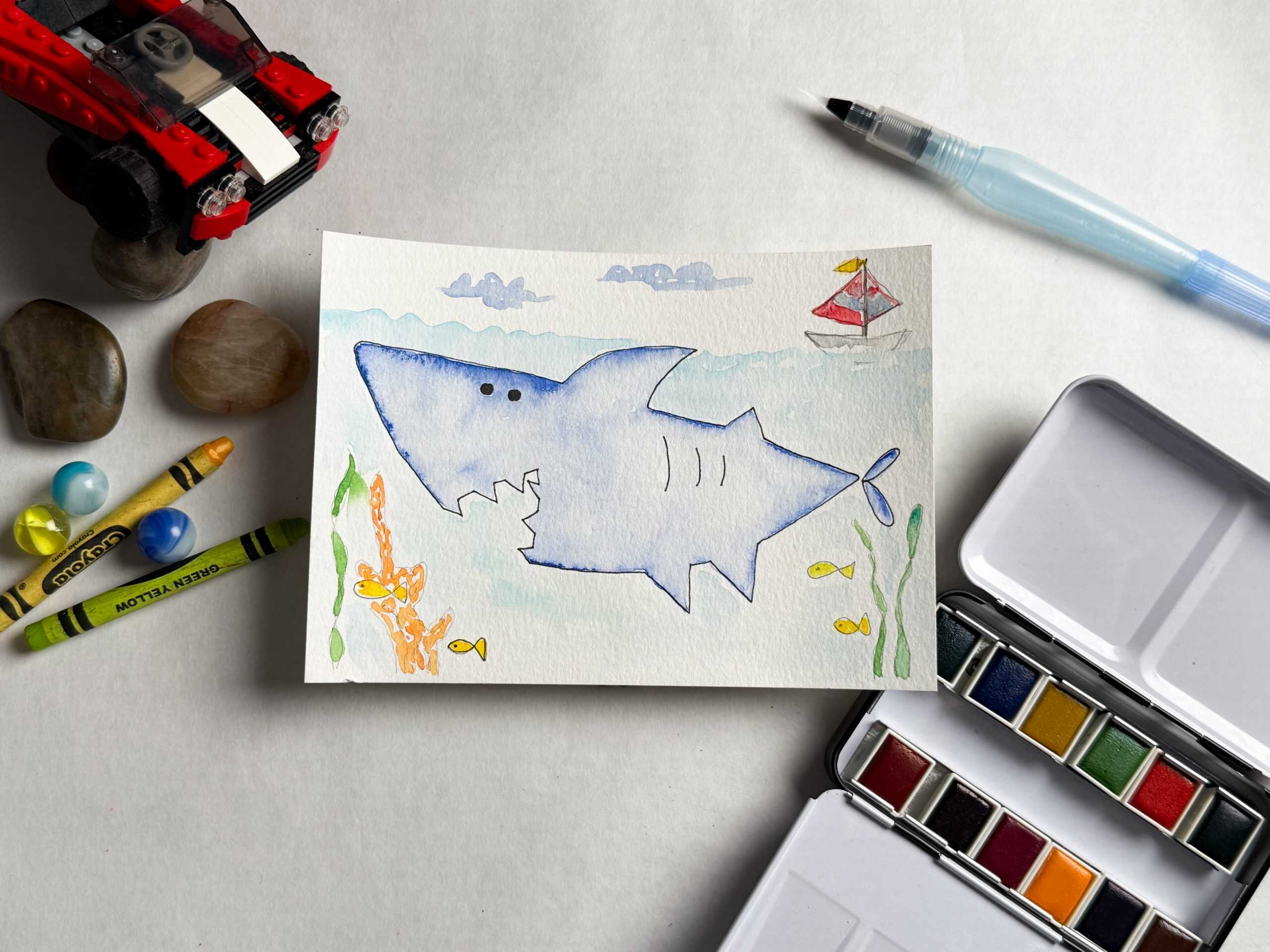 - Activate your pan colors by adding water, then load your brush and transfer pigment to your palette’s mixing area. Repeat with other colors.