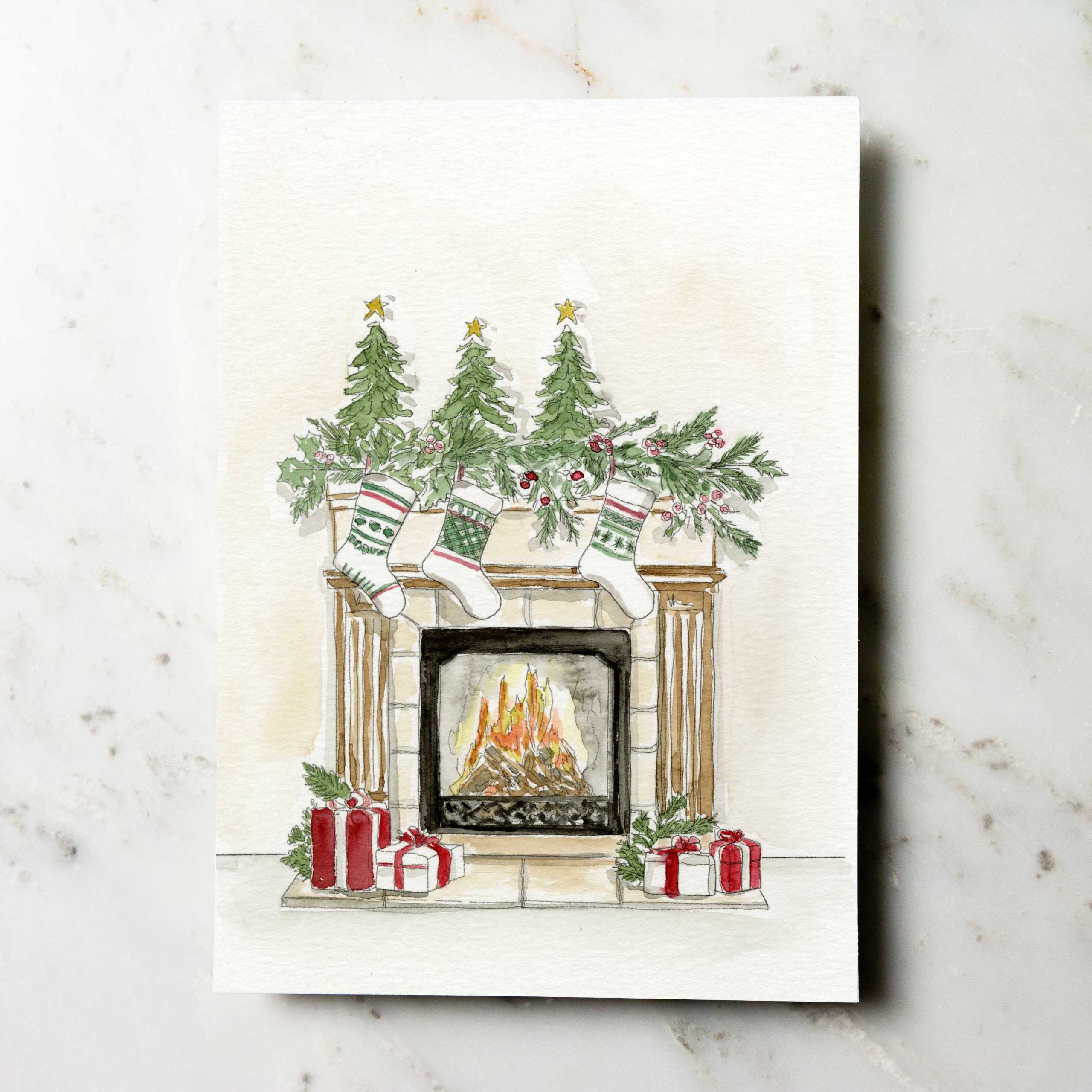 Firelight flickers and stockings wait to be filled, this cozy hearth scene wraps you in warmth, the heart of a home at Christmas.