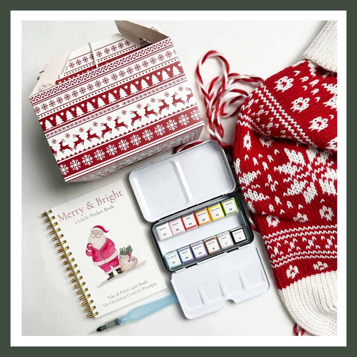 Created for joyful moments of painting where holiday cheer abounds. A lovely keepsake for yourself — or a thoughtful gift to delight someone you love. Gather your favorite watercolor supplies along with a Take & Paint Book, and enjoy a moment of creativity.